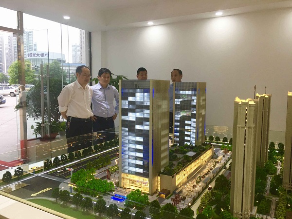 詹先豪一行先参观了徽盐世纪广场的售楼部,在听取了现场销售人员的介绍后,詹总指出,要加大办公产品的营销力度,灵活运用各种销售策略,充分利用房地产公司和营销公司的资源,针对有实力的大客户主动出访,加快销售加快回笼资金。